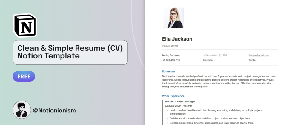 Here's why this Notion Clean and Simple Resume Template is the perfect choice for your job application: